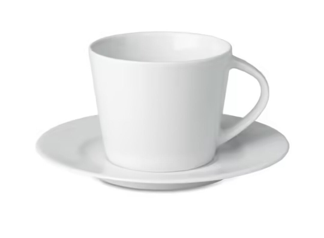 Porseleinen conische cappuccino kop met schotel, 180 ml.